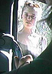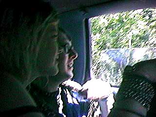 Jessika and Johnny Boom Boom talk out the window to Joanna Road Rage near the the folk festival at "the Rock" on Mormon's Creek.