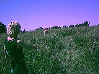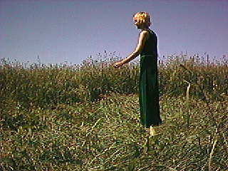 Wacky Jen stands in the center of one of the crop circles.