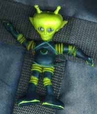 Jessika arrived to scan lots of work from her tattered "home page." We also had some fun scanning our faces and objects such as the jolly green alien she has attached to her bag (the bag, by the way, she calls a "space ship." We made one as a message to Deya, complete with silly "Doo dee doo Deya" written on our foreheads.
