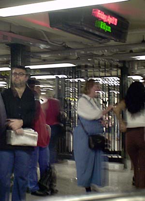 On Fridays Gretchen works as a writing tutor at Nassau College in Long Island. I'd arranged to meet her this evening at six for Indian Food, an arrangement whose importance had increased with each shitty thing that happened to her throughout the day. Our chosen point to rendezvous was in front of the dog run in Union Square. After walking Sally in the park, I saw huge black thunderstorms building up in the west over Manhattan, so I hurried as fast as I could to the Q station while lightning scrawled lines in the sky. As the subway crossed the East River on the Manhattan Bridge, I could see the towers of Manhattan lit in a creepy golden light against the apocalyptic doom of thunderclouds. Rain was pouring down in an impossible deluge when I went to exit the Union Street station. Despite being go-go New Yorkers with places to be and schedules to keep, almost no one was brave enough to venture forth into the mælströml. People accumulated in a dense crowd at the base of the stairs, teasing one another about whether or not they should proceed. In a way they seemed almost happy to be inconvenienced if only for proof that rain still falls in New York (this was the first honest-to-goodness rain shower I'd seen since moving back east nine months ago). There were a number of Christians in our midst, and unfortunately they were not content to quietly reflect on their Lord and Savior. No, they took advantage of their captive audience and proselytized. An unhealthily red-faced woman in a frumpy denim dress came up to me and said she had some "good news" for me today. Uninterested, I did my usual rejection-by-groan thing that New York has forced me to master. Then I thought about the term "good news" and I had to ask myself "What, if anything, is new about this news?" The whole Jesus thing has to be about the most stale news still in circulation. Then this other Christian, a tall guy equipped with three short lengths of dirty white rope, called out to the audience saying that he was going to perform a magic trick. But, having an evangelical one track mind, he had no intention of doing anything interesting with his ropes. Instead, as his audience quickly evaporated, he used them as uninspired metaphors for different sorts of sinners. Eventually the repulsive force of the Christians was such that I dashed out into the rain, which was starting to ease up by this point. I went all over Union Square and the surrounding streets looking for Gretchen, since she clearly wasn't going to be waiting for me at the outdoor dog run. After some exploration, I decided that the most likely place would be a covered entrance to subway near the dog run. As I was waiting there, she suddenly appeared, soggy wet from having tried to find me. According to her watch, I was a half hour late. And she was mad about it too. I tried to explain that I was still unfamiliar with the rambling Union Street Subway Station and that I certainly couldn't come above ground duiring a downpour. Gretchen listened with the contemptuous suspicion of a Judge Judy. "The rain didn't stop me!" she shouted, pointed at her matted hair full of catkins and the green petals of tree flowers. "You're taking me OUUUUT!" she added, in a volume calculated to inform the general public. Her day had deteriorated even further since her last email, and she'd even been harassed by a young football-tossing Abercrombie and Fitch adherent. Straight away we went to that dimly-lit hipster dive bar called the Belmont Lounge (117 East 15th Street). As usual, the sound system was playing an entire CD from start to finish. This time it was the Motley Crue album Dr. Feelgood. "I call this genre of music 'idiot rock'," I observed. A shot of Jameson whiskey put Gretchen in a much better mood, and she seemed almost giddy by the time we made it to Haveli (near 2nd Avenue and 6th Street, just out of the East Village's "micro-Mumbai"). Haveli is the one good Indian restaurant in the area. Unlike the Christmas-light-bedecked funky-smelling establishments nearby, Haveli is a classy place with high ceilings, courteous staff, and high-quality table wine. Of course, such quality comes at a price, and (unlike the other Indian restaurants nearby), the bill at Haveli is comparable to the bills at other fine Manhattan restaurants. I ordered a whole bottle of white wine to drink with our food, and since Gretchen was already sort of drunk, I ended up drinking the whole thing by myself. We spent most of the meal talking about the situation in Isræl. This is normally a topic that we only discuss when we are drunk, because this is the one topic about which we are most ideologically divided. She has an admittedly tribalistic view of Isræl, and can cite history to support her views. I'm about as non-tribal as you can get, and I mostly view tribalism as a problem in the world. Don't get me wrong here; I think diversity and ethnicity are a good thing and I've always thought (and my non-Jewish parents taught me) that the Jewish view of the world provided more than its fair share of positive contributions to Western Culture. Nevertheless, I view religious (and/or ethnic) states such as Isræl as anachronisms. How can you ever be modern (or peaceful) if you're that preoccupied with someone's religion and/or ethnicity? True, the Holocaust has Jews jumpy about the intentions of the non-Jewish world, but to my way of thinking, the best solution for Jewish survival has always been to not put all their eggs in one basket. The basket known as Isræl is a sitting duck for just one properly-landed, properly-armed Iraqi Skud. If I were a religious Jew, I'd reinterpret Adonai's promises in the Torah and retroactively dub Brooklyn the Promised Land.