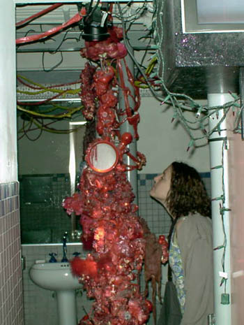 Art in the basement bathroom (with Gretchen) at PS1.