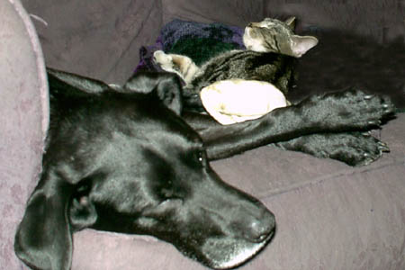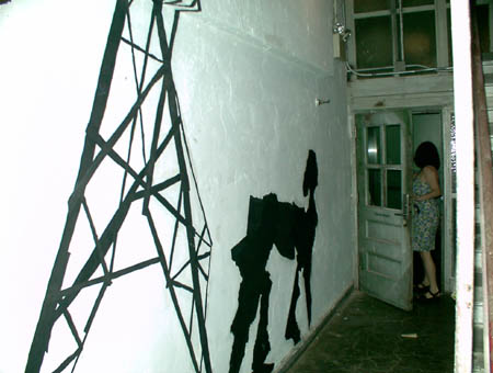I was running low on my favorite tea, Red Label , which I buy at an Indian supermarket in Jackson Heights, Queens. So today Gretchen and I went on a little adventure to Jackson Heights, mostly to hit the Jackson Diner, but also to get tea and see the MoMA museum at PS1 along the way. I noticed that every subway station along the way had its own squad of police officers standing around looking simultaneously both serious and bored. Such public shows of police presence were a feature of post-September 11th New York, but they've been in decline since them. Perhaps there's a fresh new terrorist threat that only law enforcement knows about. We got off the 7 Subway in Long Island City and went directly to MoMA, but found that, though open to the public, it didn't have any active exhibits. All the galleries had been cleared of anything that wasn't built in or nailed down. The staff, consisting largely of hip urban youth of indistinct ethnicity, was all there, but they didn't have much to do except keep us from going in the wrong places and taking pictures in off-limit areas. The only really interesting work still intact was a tiny example of video art hidden in a postage-stamp-sized hole in the floorboards near the main desk. I heard it a long time before I saw it, and only noticed it when I looked down to examine the quality of the floor boards. PS1, as the name implies, is a repurposed public school, and the patter of millions of tiny and not-so-tiny feet have definitely taken their toll. Anyway, over beside a heat radiator, I kept hearing a woman calling out to me, and then what should I see shining from a large imperfection in the flooring but the yellowish light of a color cathode ray tube! As I drew closer, I could see that within this light was a tiny naked woman, filmed from above. She was waving her arms and pleading to me (yes, me) about something or another. The installation gave the illusion that I was looking down through the rotting floorboard to the next room down and some woman had caught me peeping at her. As soon as I noticed the installation, a number of middle-aged women, curious as to what I'd found, gathered around to marvel. I wonder how many people pass over this tiny installation without ever seeing it. Our favorite part of the museum was the rooftop porch and an adjacent room with a steeply-sloping ceiling. From the porch, we had an excellent view of Midtown Manhattan. And in the adjacent room, we indulged a fantasy which imagined us checking out the place as though a real estate agent was showing it to us. Oh, the miracles we could have worked on that place! In fact, I don't about Gretchen, but I'd be willing to live in that room and have my world be a permanent MoMA installation (in exchange for free rent, that is). Mind you, Long Island City is hardly my picture of ideal New York neighborhood, but it would be a reasonable sacrifice on my part for the cause of Art (the kind worthy of the capital A). Then there was the Jackson Heights part of our adventure, particularly the phase when we were in the Jackson Diner. That place has an amazing short liminal phase between anticipation and the point where you say, "For the love of Vishnu, why did I eat so much?" On the way home, we stopped at Union Square to see a matinee of Human Nature. There were only about a dozen people in our theatre. My big draw to Human Nature was that it came from the same people who made Being John Malkovich. Human Nature was great, but it was no Being John Malkovich. At times it had the same feel, but I was hoping for a similar mindfuck and Human Nature didn't quite come through. Perhaps the theme of feral humans animals isn't shocking enough for me; my brother has been preoccupied with that idea since the 70s, and by now it tires me, as do most concepts obsessed upon by my brother. Then again, perhaps those table-manner-savy white mice moved a little too much like the dinosaurs in Walking With Dinosaurs. On the way home, Gretchen saw one of the MTA "Puzzled by Service Changes?" posters. It was the kind having the little round colored balls with the letters and numbers of the various subway lines, each divided by thin lines into jigsaw puzzles. This particular poster happened to be housed in an uncharacteristically unlocked frame. Gretchen has wanted one of these posters for some time, and this was her chance. We were on the 4 line and would be switching to the 2 at Nevins Street, so just before Nevins she fished the poster out of its frame. Mind you, there were plenty of people standing around when she did this, but she did it with such matter-of-factness that no one really noticed. Well, there was this one black woman across the aisle from me who sort of freaked out about it, but she was laughing more than frowning. With her matter-of-fact white girl expression (and shielded by her sundress), no one was going to give Gretchen any shit about her larceny. In the evening I received a number of emails, including one which stated that my mortgage had already been approved.