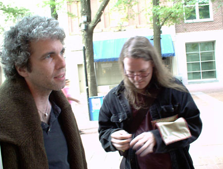 Jamie Dyer (left) and his buddy Crypsi. I think that's his name. According to Jessika, Crypsi used to write anonymous band show reviews for the C-ville. Apparently word got out about his identity and now he is widely regarded as a pariah.1Josh Mustin was something of a bit player back in the days of Big Fun, finding himself on Sara Poiron's shit list unusually prematurely over an argument concerning his alleged consumption of a jar of olives belonging to the late Shira. Josh (who, it turns out, hadn't even eaten the olives) is reported to have made the argument, "it's just a jar of olives," and this did nothing to improve his status in Sara's rigid hierarchy of humanity. Indeed, Sara had a plan of actually protesting in front of one of Josh Mustin's birthday parties, perhaps holding aloft a picket sign reading, "It's just a jar of olives INDEED!" Understandably, then, Josh Mustin has few good memories from the days of Big Fun. Nowadays, however, Jessika seems rather fond of him and even admits to being embarrassed by recollections of the petty exclusivity of the Big Fun era.