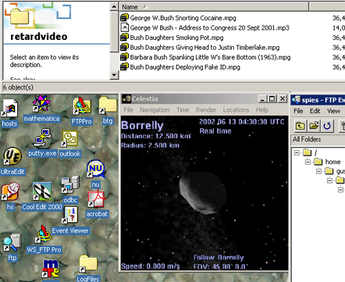 I truly believe that people are so profoundly modified by the metamorphosis of puberty that they are essentially different human beings after it happens. When I underwent the trauma of puberty back in 1981, the grand rewiring of my brain and refocusing of my interests was so profound that I occasionally had delirium and hallucinations, psychedelic experiences that I wouldn't have again until I started taking drugs (and supporting terrorists) at the age of nineteen. I remember one afternoon back then I was lying in my bed looking up at the subtle relief pattern in the semi-gloss paint on my bedroom ceiling and I gradually became aware of armies of shapes: squares, triangles, circles, all interacting in some complicated way that had a direct and profound bearing on me. I can't find words to describe what exactly this profound bearing amounted to, but I'm sure my brain was undergoing a particularly complicated hormone-induced neural restructuring at that precise moment. It was a restructuring that ultimately gave me an awareness of how much the bathroom stunk after someone used it. The restructuring also left me with an unexpected interest in popular rock music. I found this aspect of my puberty particularly embarrassing, because for three years I'd been teasing my older brother about his sudden interest in popular rock music, completely unaware of how helpless he and I both were to the dictates of our hormones. I'm looking down the pop chart for the year 1981, trying to see what music I liked back then. I remember I really loved "Burnin' For You" by Blue Oyster Cult. Then there was "Rapture" by Blondie. It was weird and slightly annoying, but I liked it too, partly because it was so long. Similarly, "Tom Sawyer" by Rush had the feel of something that was good simply because it was smart and a little ahead of its time. Even back then I was never one to like something simply because it was wildly popular. I was particularly struck by the Moody Blues' "the Voice," and in the process of researching the band further (in record stores, mostly), I gradually became obsessed with late-60s/early-70s psychedelic white boy pop. This was in the early days of MTV, the days before widespread cable teevee, so I never had a very good idea of what any of my favorite musicians looked like. For me it didn't matter; it was always about the music. Indeed, I gradually came to be repulsed by the musicians who seemed to be trading on their looks. Video was killing the radio star. Fast forward to tonight. I spent much of the day sorting through my MP3s, fixing inconsistencies in file names and throwing away duplicates. Towards the end there I was mostly just listening to My Bloody Valentine on my headphones. Their hopeful pitch-bending wall-of-sound melancholy was perfectly suited to my mood. By the way, on the insistence of pundits and friends nationwide, I've tried listening to the new Wilco album Yankee Hotel Foxtrot, but it does absolutely nothing for me at all. At nine o'clock sharp, Gretchen and I tuned in to Fox to watch tonight's installment of American Idol, a show more addictive for what is wrong with it than what is right with it. The whole premise of tracking down the next big pop music star is utterly repulsive to me, but yet I must watch. At any moment someone is likely to say something really stupid or fall onto the floor in the irrational throes of a temper tantrum, and I certainly wouldn't want to miss it. The most infuriating moment of tonight's episode came during the first winnowing in Hollywood. A big unattractive black girl with a beautiful voice was told that she "didn't look like an American Idol" and was summarily sent home. I don't want to beat a dead horse that others have beaten better, but I find the notion that someone must have a certain appearance in order to become a pop music sensation a form of corporate-sponsored synthesia. This American Idol exercise is supposed to be about music, stuff that is heard and not seen. Remember, the quality of the music was all that mattered to me when I was a teenager. You'd think that in an age in which MTV has ceased playing videos, a musician's image would have begun to decline in importance. Image has risen and been dethroned several times in the history of modern mass-market pop culture, and I would venture to say it's poised for another dethroning. In the meantime, though (Beck and Moby, stars that they are - or are made of - not withstanding), for men it's still all about bleached and gunked hair. For women, the key to success appears to be preternaturally flat (and fully exposed) navel-ring-adorned bellies and thongs executing McDonaldsland parabolas above me-too low-cut pre-faded blue jeans. God I hate blue jeans. They're the veritable SUV of outer buttwear. But I'm not cool; don't listen to me.