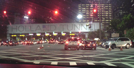 Why did they put the additional "Yes, believe it or not, we're patriotic too" flag over the N?As we crossed New Jersey, we saw a strange orange sphere hovering over the eastern horizon. At first I didn't know what it was. Might it be a weather balloon? A spacecraft piloted by the Jersey Devil? But then I realized it was actually the moon, somehow made orange by the peculiar non-award-winning Garden State atmosphere. By the time we'd reached Brooklyn, it had risen higher and taken on a more benevolent shade of yellow. We took a risk and decided to try to get to Brooklyn through the Holland Tunnel and across Manhattan instead of across Staten Island and the Verrazano Bridge. But still we encountered what would probably be classified as "a significant delay," because half of the tunnel had been shut down for repairs. There are all sorts of showy "security" displays at the entrance to the tunnel and on either side of the Brooklyn Bridge. Police cars idle with flashing lights, cops wade out in traffic and wear suspicious frowns, that sort of thing. But from the look of things, these rituals are mostly for propaganda value: to show the nervous lemmings "something is being done to stop the evil doers." Actually, when you stop to consider the near-daily suicide bombings in Isræl (and the bi-annual Basque-sponsored car bombings even in tranquil Spain), you have to agree that Americans have it pretty good with respect to terrorism. What a difference a couple of oceans and the lack of an indigenous pissed-off minority make.
