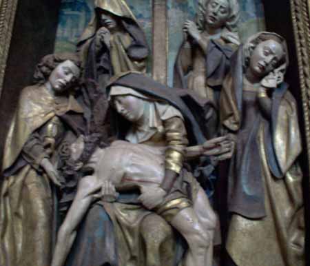 The Cloisters consisted of a building built mostly in the Romanesque style using native stone, but with details such as columns, archways, and even whole apses pillaged from medieval sites in Europe. Inside, the Cloisters were chock full of statuary, paintings, illuminated manuscripts, altar pieces, tapestries, and various decorative kitchen artifacts from the medieval period. Nearly all of the art had a religious theme, with one glaring exception: a set of tapestries depicting the hunting and killing of a unicorn. I've always been a fan of the rawness and creepy angularity of medieval art, and it was good to be able to see it up close and in the flesh. One can't get a sense from reproductions, for example, how detailed the drawing can be in illuminated manuscripts. And the details in one painting I saw were so fine that I couldn't always distinguish between the cracks in paint that the artist had depicted and the real hairline fractures in the painting itself.