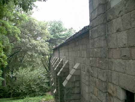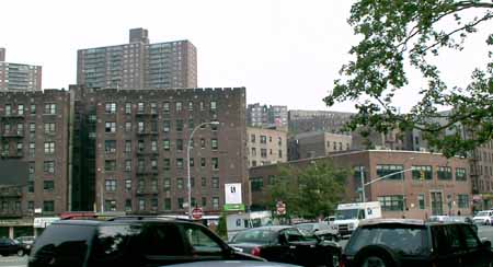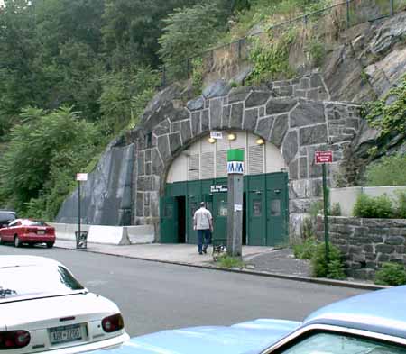 When we finally got off the subway at 190th Street, we found that the path out of the station lead down a gentle-graded tunnel to daylight. You know you must be inside a pretty strange landscape when you're underground and the way to the surface involves going further downhill. It turned out that we we'd been in a tunnel running down the center of the Fort Tryon Ridge, and the entrance to the subway station was in the eastern side of a cliff, a narrow block away from the northernmost section of Broadway. Though the topography was completely alien from my usual template of New York City, the scenery here still had a distinctly New York feel to it, with tall brick buildings crammed together at strange angles over the undulating ground. Nearly all of the people we passed on the street appeared to be Hispanic. Many of them were engaged in activities one doesn't normally see in the more diverse neighborhoods to the south: outdoor bingo and dominoes games, for example.