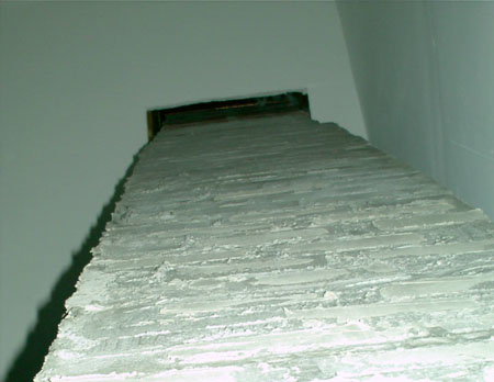 These shelves are built into the secondary wall mentioned in the earlier caption.
