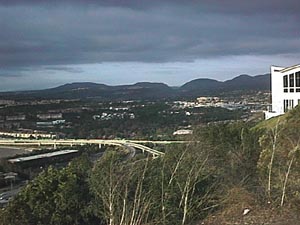 In the evening I took Sophie for a walk down to the edge of the canyon. On the way, I passed a coed group of teenagers, laughing, flirting and playing on their skateboards. I felt a pang of loss, suddenly aware of the fact that their world was one I could never again enter. Above Mission Valley, I stood for awhile appreciating the scenery. To the east I could see the mountains of the Cleveland National Forest, to the west I could see Dog Beach and the mouth of the San Diego River, with the endlessly glinting Pacific Ocean beyond. The wind was cool and strong at the edge of the Normal Heights flatlands.