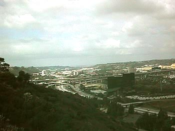 Mission Valley from Normal Heights, looking toward the cloudy ocean this morning. The intersection below is where I-805 meets I-8.