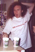 The bar where the show was to happen was a madhouse of pushing and shoving. Staffers were forced to get around using unorthodox procedures (climbing up columns to the balcony, walking down the bar, etc.). Both Kim and I were struck by the fact that, for the most part, people at the bar were "beautiful people" Hollywood types, all decked out in fashionable urban evening wear. There were almost no guys in baseball caps and virtually no hippies either, although dyed hair was in some abundance. Mind you, the Counting Crows are a big pop act, the kind that derives its strength from a strong base of support in the wandering pseudo-hippie deadhead world as well as the obnoxious baseball-cap wearing collegiate scene. Though Adam and his band might owe a lot to these musical constituents, he hadn't seen fit to let them in on tonight's secret performance.