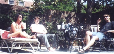 Ed picked us up in front of the stone lions that guard Lindsay's place and we headed down the sunny, tree-lined streets to his house. His wife and infant child were there, as was some additional woman whose function was never made clear. We went out into the sunny backyard, drank a few Heinekens, smoked some pot, and talked about interesting things that my mind had no capacity to remember. I felt an unjustified familiarity with Ed Nel$on. He looked like a tall version of Matthew Hart and had every bit of Matthew's affability, enthusiasm and intelligence, with evidence of a refreshing dollop of ambition as well. One of the few things I can actually remember of our conversation concerned Ed and me possibly going into a web-related business together should Kim and I ever choose to move to New Orleans. He said he had the money to fund such a venture and that it would be a welcomed change from his present job "working for the man." But such giddy business talk was merely a symptom of an even greater enthusiasm Ed had for the tantalizing possibility that Kim and I might one day move to New Orleans. He kept suggesting that we move into the house directly across the dead-end street in his upscale neighborhood.