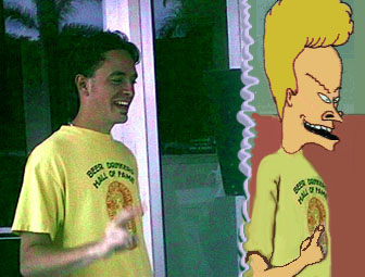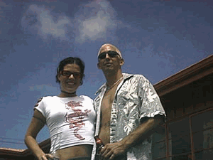 Whoah, where was I? Back at the complex, Kim got into her little red dress in preparation for an evening of massaging men in a romantic Victorian atmosphere. Kevin and Al showed up, but we were all pretty worn out from a day of sunburn and drinking and I had nothing with which to entertain guests except kind buds and a lame movie, so we quickly lapsed into boredom. Al decided to call some chick he'd met on the internet to find out what she was up to on this festive Saturday. After a brief conversation, Al announced that we were heading to a party.