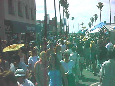 The hangover pain was dispatched with marijuana and analgesics while apologies were made for last night's sociopathic behaviour. Pretty soon Jason, his mom Patty and her boyfriend Kevin (along with occasional others amongst our neighbors) were out in the courtyard drinking booze and otherwise preparing for this especially festive day in Ocean Beach. It was, you see, the day of the Newport Street fair, which meant that Newport Street was closed and filled with vendor's tents. On Sunset Cliffs Blvd., on the beach, and somewhere in between three music stages were being set up.