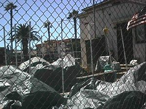 A perpetual state of "closed yardsale" in a fenced, dusty Ocean Beach yard.