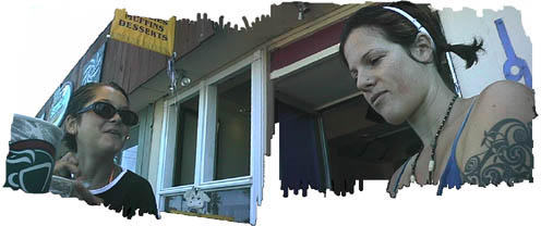 From left: Renee and Kim in front of the most urban coffee shop of Ocean Beach.