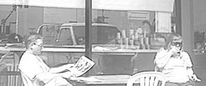 Next stop was downtown North Park, if you can imagine such a place. It's about as Hopperesque as San Diego gets. In a strip mall we found a rare gem, a 20 year old Italian restaurant that had somehow kept up with the times. Judging from it's mid-day crowd it had become a hangout of the young, pierced & trendy overweight scene. We got our pizza slices and as we were about to drive off we watched a plump woman in front of an adjacent diner catatonically chugging a cigarette, oblivious to the inch long ash that was forming, breaking off and falling all over her (see picture below).