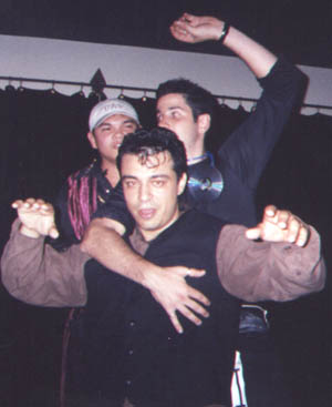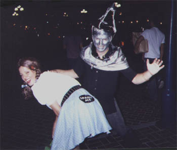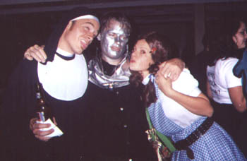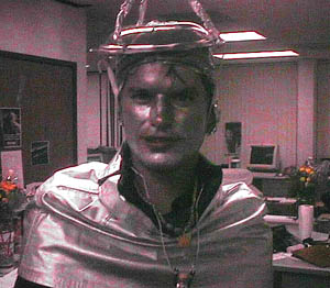 Front to back: the Director of Engineering, one of the VPs of Corporate Development, and Sherms the Web Designer. The VP of Corporate Development is dressed as a world wide web concept piece, complete with AOL 4.0 installation CD.