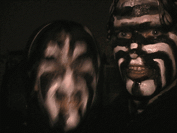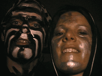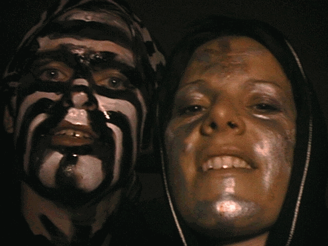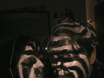 For most of the rest of the night, Kim and I attended to the project of snapping pictures of our painted faces with my digital camera. On a whim, I'd painted my face with zebra stripes, and when we started making stop-action animations, I thought maybe Kim should become a zebra too, so I painted stripes on her face. Something about the Ecstasy buzz made the process of photographing and animating our faces fascinating for both of us. It was so fascinating, in fact, that we lost interest in everything else going on and everyone else but ourselves.