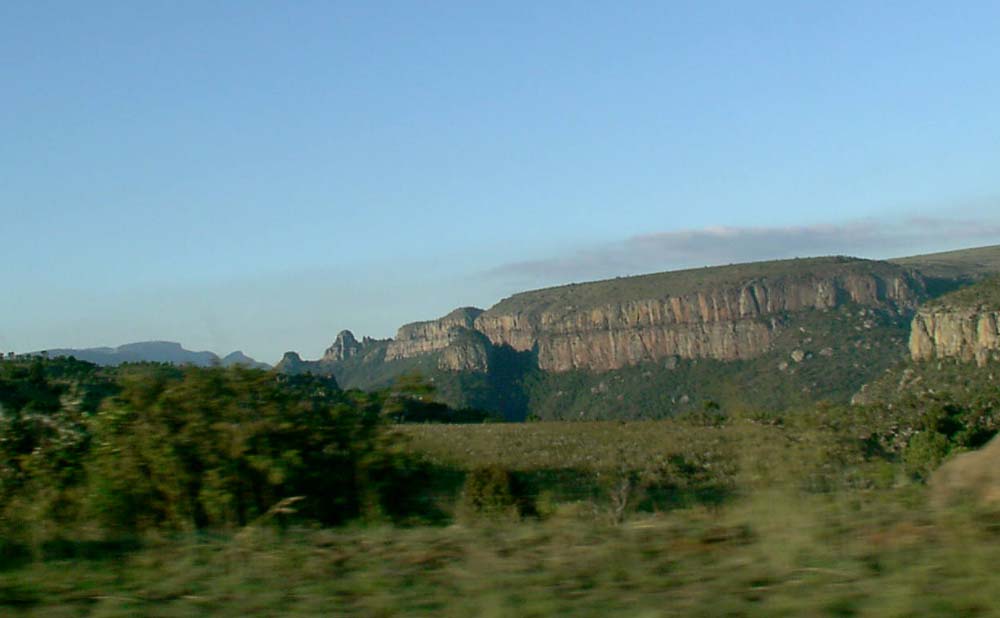 Landforms at the Klein Drakensberg escarpment resemble traditional thatch-roofed "rondavels" in this area. (Click to enlarge.)